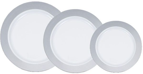 Sensations Metallic Silver Rim Plastic Dinnerware